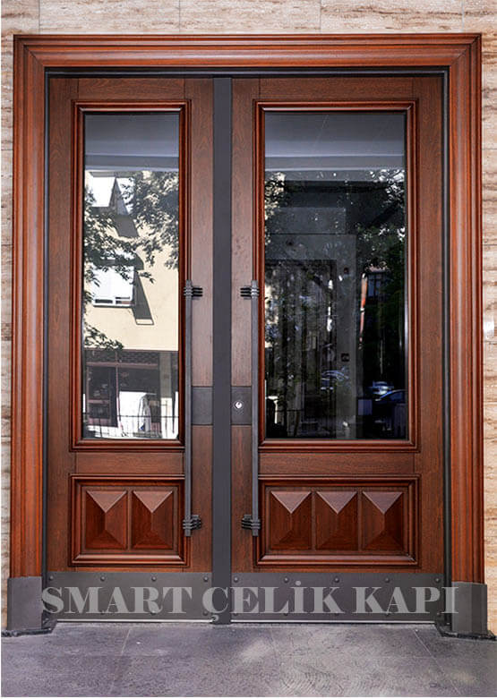 Ahşap kaplama bina giriş kapıları özel su kontrası malzeme ve dış etkenlere dayanıklı cilalar ile güçlendirilmektedir. Ahşabın doğal dokusu üzerine işlenen kabartma desenleri ile üretilen Ahşap kaplama bina giriş kapıları geçmişten günümüze en çok tercih edilen apartman giriş kapısı modelleri olmuştur.